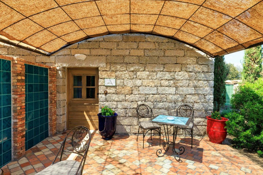 客室はどれも個性豊か。古いアーチ型の天井や梁を活かし、ニュートラルカラーで上品にまとめられた空間には、印象的な照明デザインが施されています。屋外に広がる陽光あふれるテラスとは対照的に、室内は涼やかで心安らぐサンクチュアリ。修復された石造りの納屋や羊小屋を利用したスイートには、プライベートプールや隠れ庭も備わっています。自然は常に身近にあり、リゾートを抱く美しいオルトロ渓谷の風景が滞在体験に溶け込みます。視覚、聴覚、嗅覚すべてでその魅力を感じながら、心からくつろぐことができるでしょう。ここでの時間は、ゆったりと、そして丁寧に流れていきます。