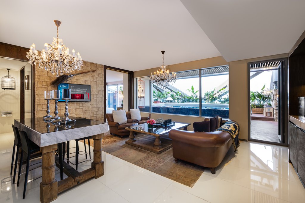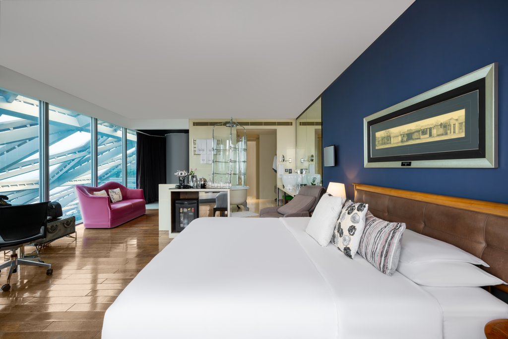 客室は非常に広々としており、多くにプライベートテラスが付き、一部の客室には専用プールが備わっています。サルバドール・ダリ、アンディ・ウォーホル、曽梵志(ゼン・ファンジー)などの作品を含む、驚くべきアートコレクションが館内を彩ります。