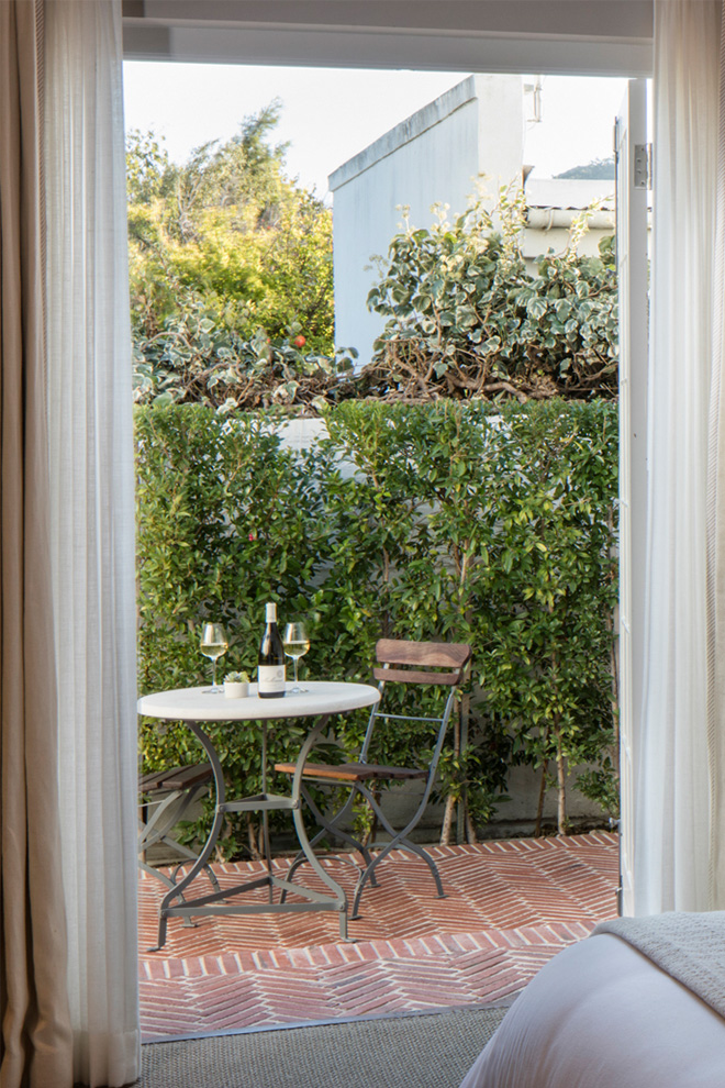 床から天井までの大きな窓は、どの客室でも海岸特有の柔らかな光を切り取り、装飾的な部屋からシンプルな空間まで、すべてが敷地内で育つブドウ品種の名を冠しています。